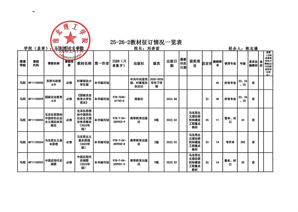 伟德国际1949官网2025-2026学年第二学期教材选用情况公示