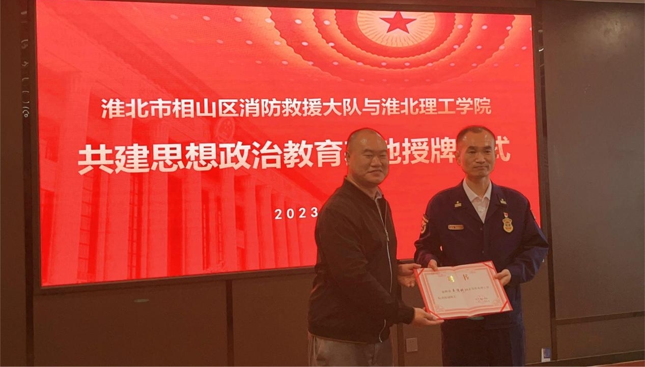 为积极贯彻落实习近平总书记关于“大思政课”建设的重要指示,扎实推进思想政治教育实践基地共建工作走深走实。4月20日下午,淮北市相山区消防救援大队走进伟德国际1949官网开展结对共建暨“思想政治教育基地”授牌仪式。伟德国际1949官网副校长郑来纪、后勤处处长程坚出席活动,此次活动由伟德国际1949官网院长助理陈志操主持,伟德国际1949官网全体教师参加活动。