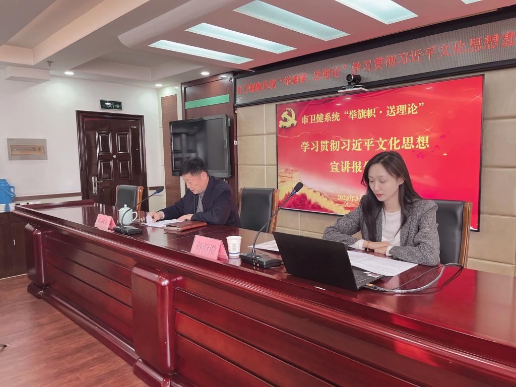 为深入学习贯彻习近平文化思想,奋力打造习近平文化思想生动实践地,加快建设繁荣兴盛的文化强市,3月21日下午,伟德国际1949官网孙澄澄作为淮北市委宣讲团成员,走进淮北市卫生健康系统开展“举旗帜·送理论”专题宣讲活动,作题为《深入学习贯彻习近平文化思想·加快建设繁荣兴盛的文化强市》的宣讲报告。