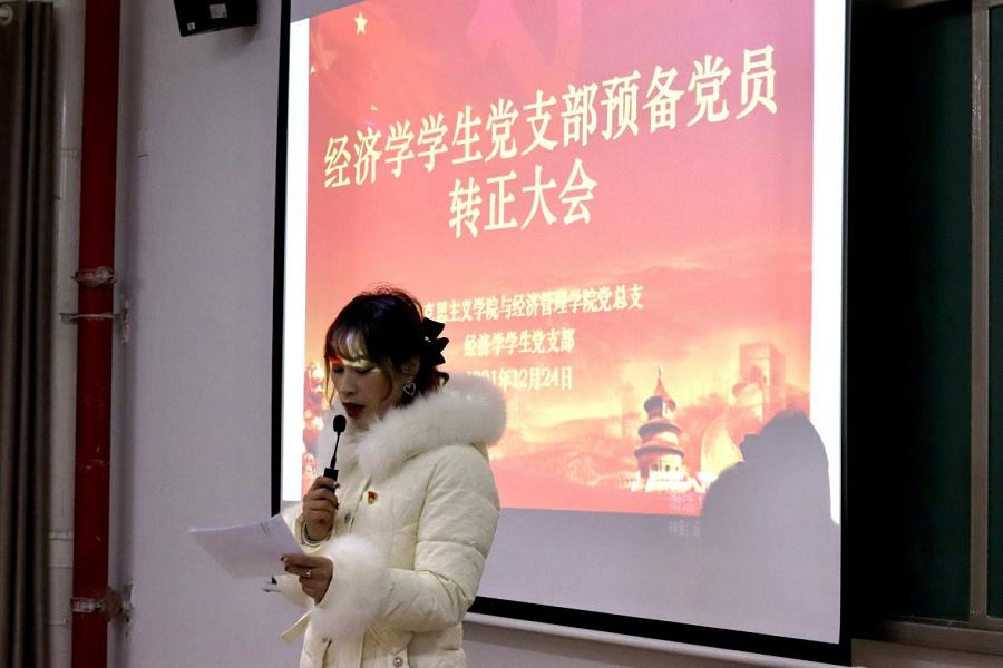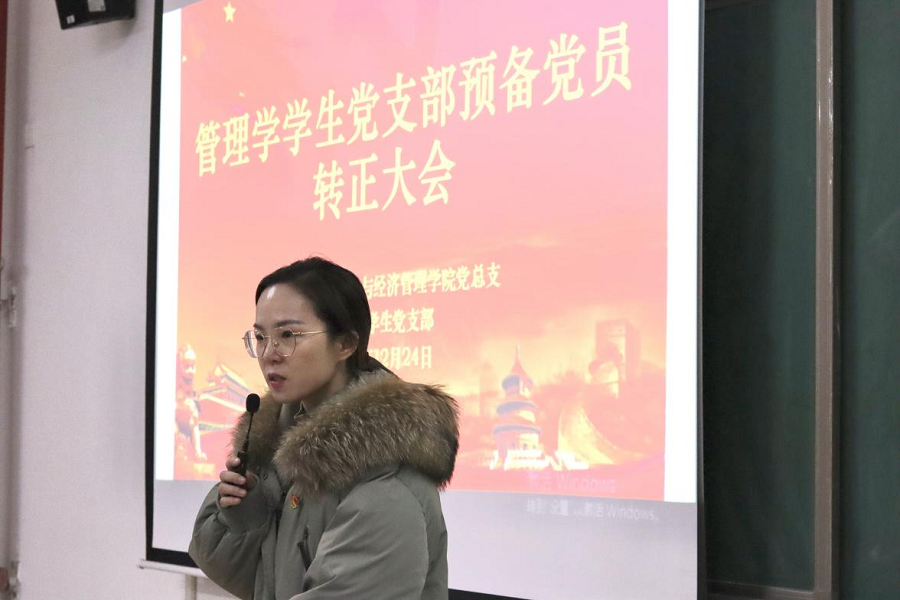 为进一步健全和规范基层党支部的组织建设,增强党支部生机与活力,2021年12月24日下午,伟德国际1949官网与经济管理学院经济学和管理学学生党支部在二号教学楼412教室召开了预备党员转正大会。两个支部的全体党员参加会议,会议分别由经济学学生党支部负责人员禹辛、管理学学生党支部负责人苗青青主持,院长吴玲和经管学院的相关教工党员列席了会议。